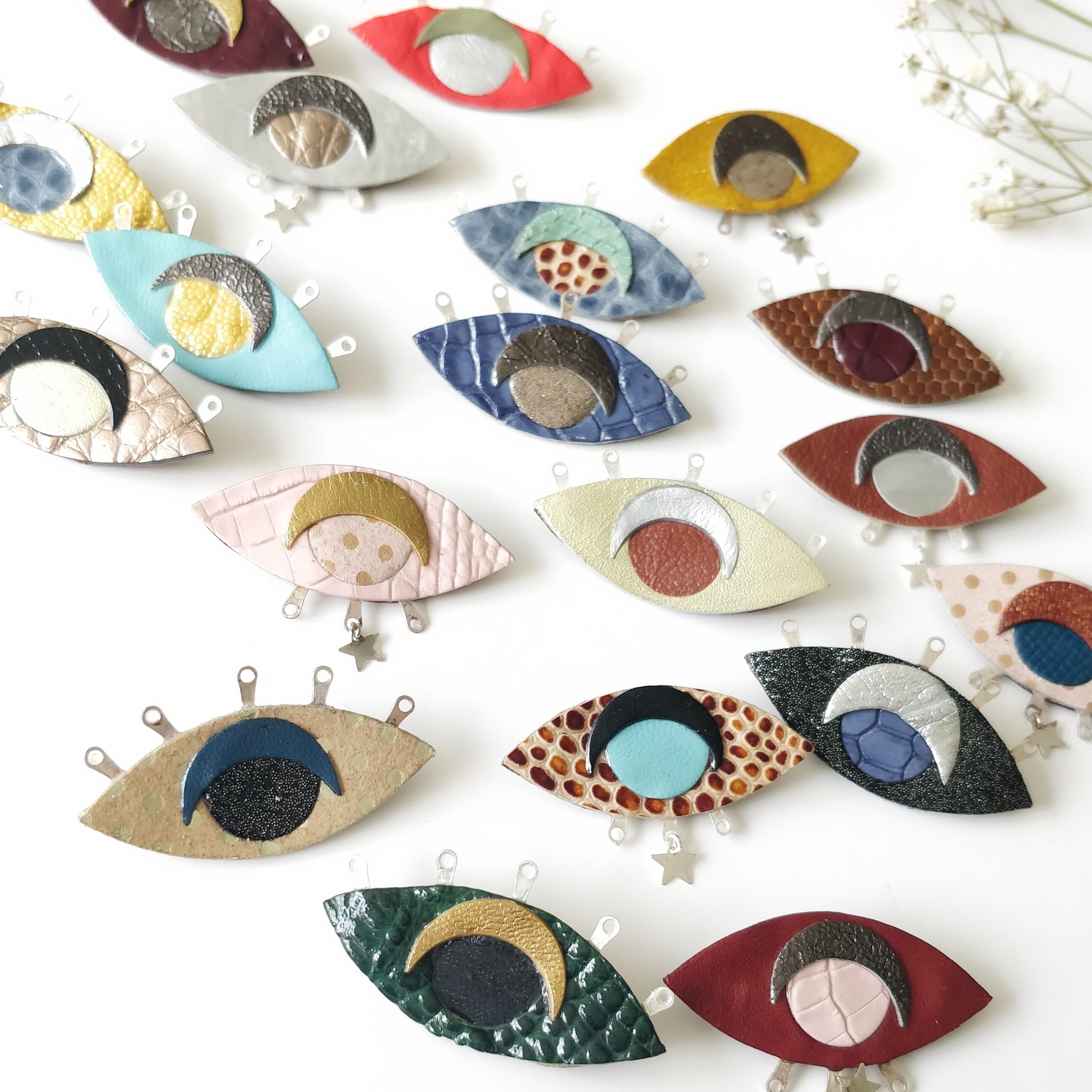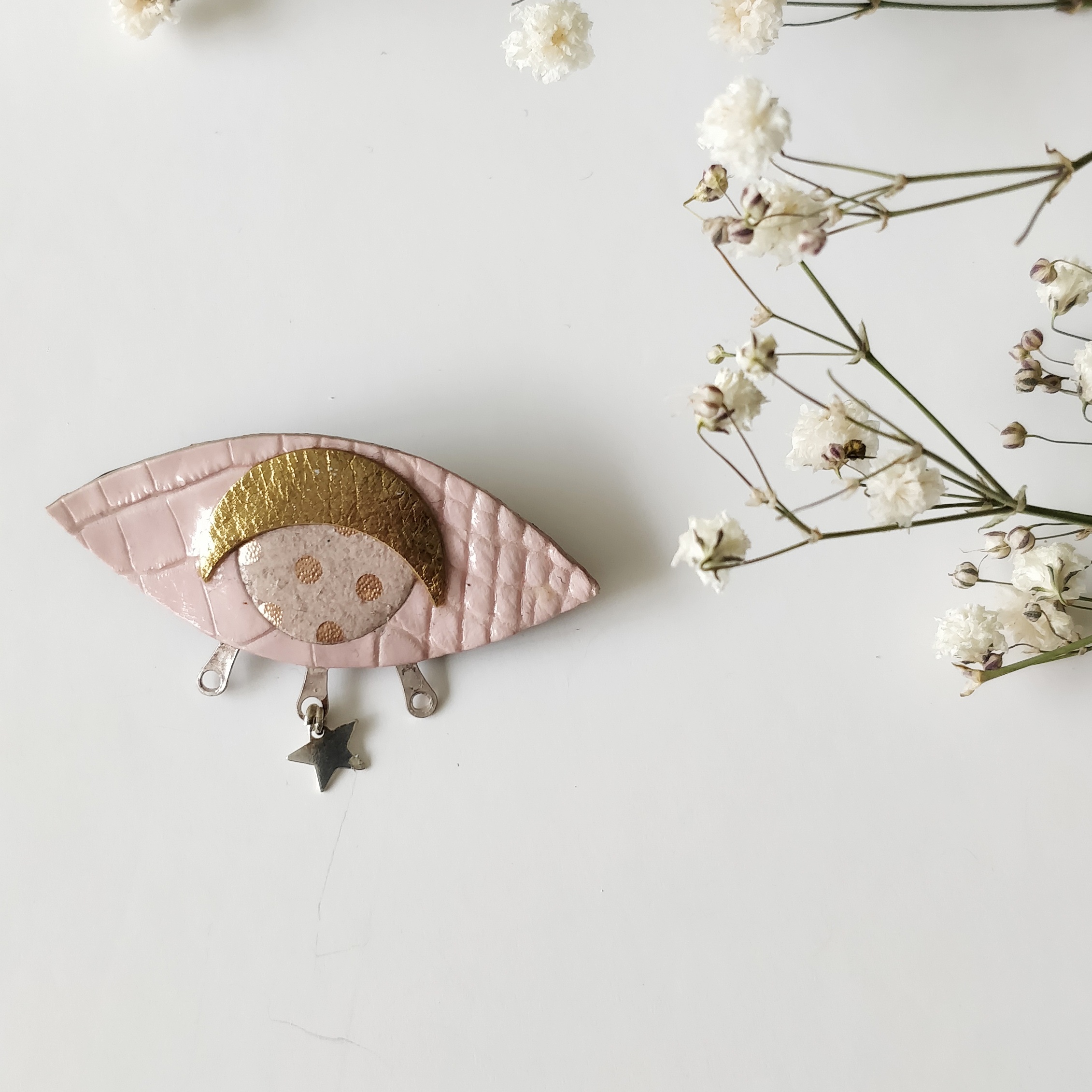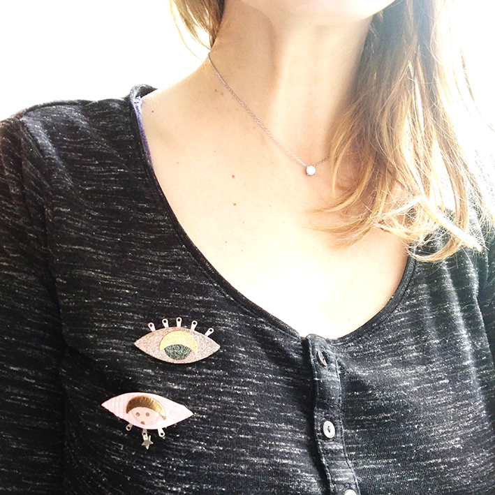 Cette jolie broche œil est à accrocher sur une blouse, un pull ou sur un manteau.
