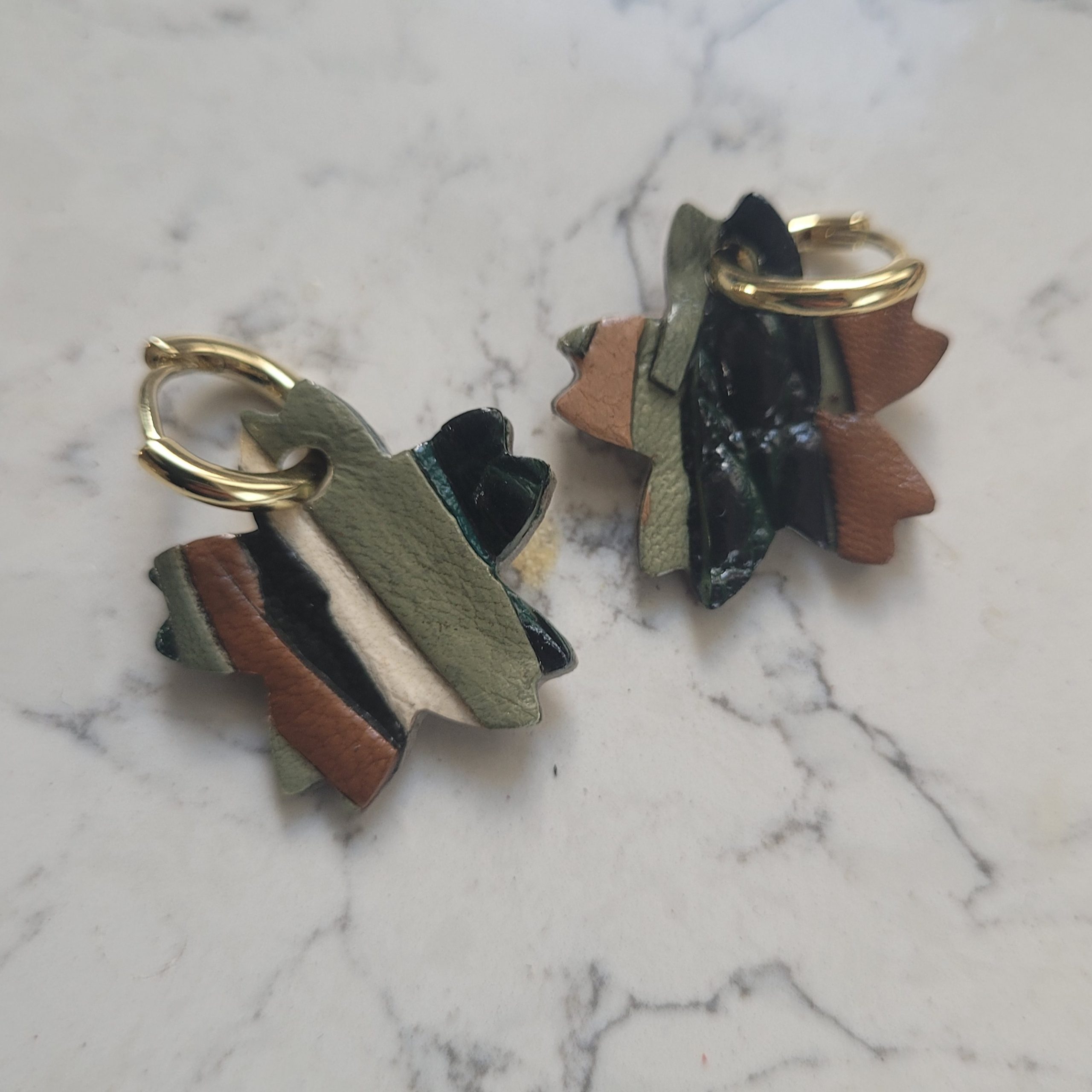 Fleur réalisée en camouflage de cuir, crée à partir des chutes que mes découpes engendrent des chutes achetées.
