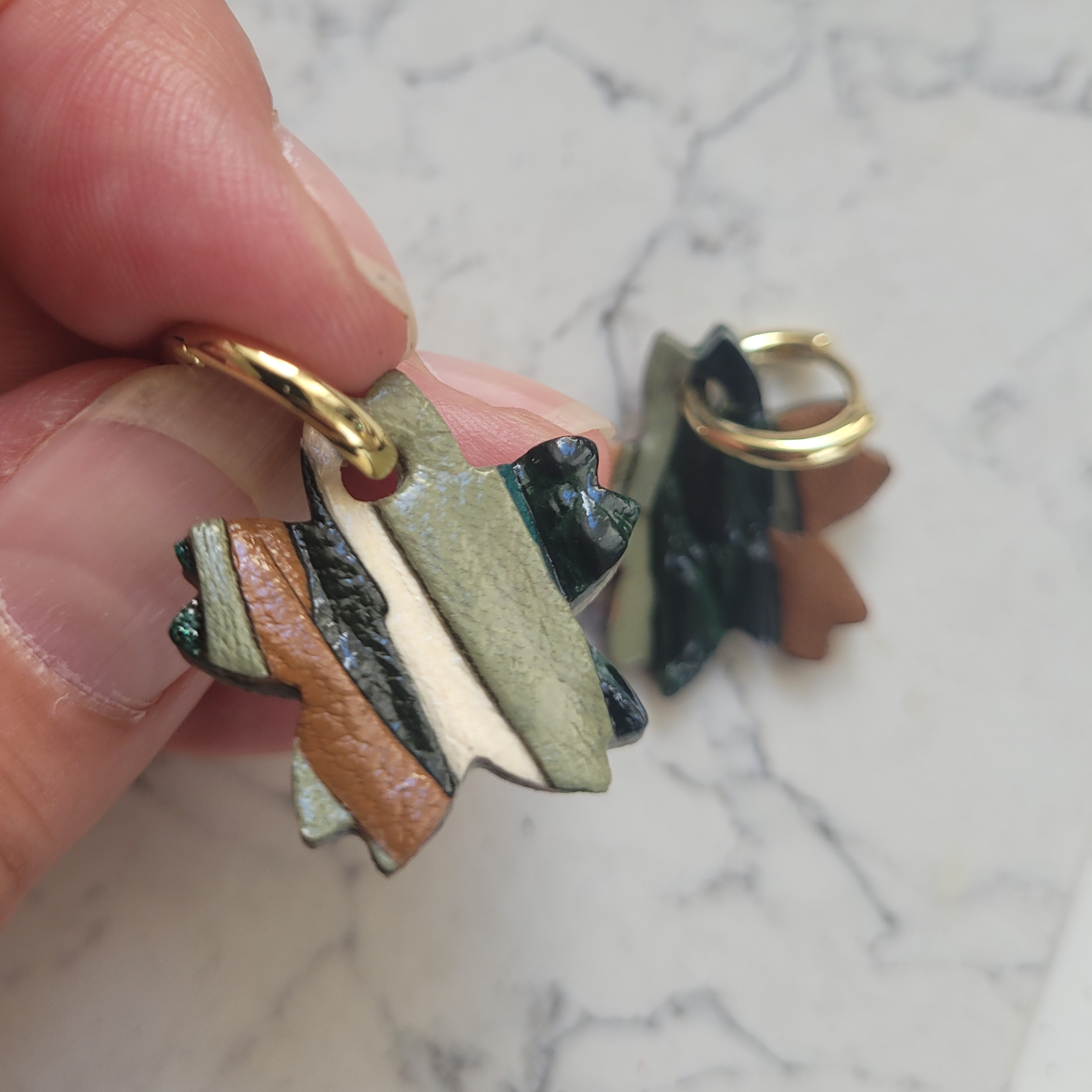 Petites créoles en plaqué or et pampille fleur de cerisier en cuir réemployé et recyclé fabriquées en France